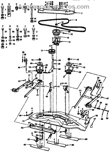 Parts for Craftsman 917253652: Mower Deck- Key Parts 37-66 Parts