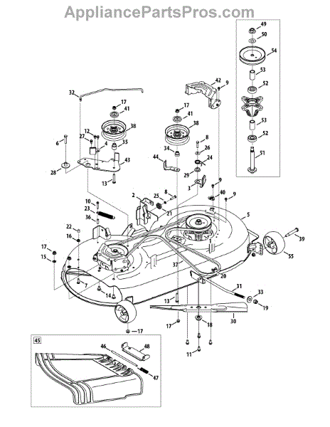 This part is a spindle pulley assembly that is used on lawn tractors. The spindle pulley assembly includes the mandrel, the shaft, and the pulley. The spindle is the post to which the blade attaches to and spins when the lawn tractor is being used.A new spindle pulley assembly may be needed if the original is missing from a new lawn tractor. If any component of the spindle pulley assembly is cracked, damaged, or broken, the entire spindle pulley assembly will need to be replaced. Remember to wear gloves when operating or performing care and maintenance on any outdoor power equipment. Never perform care and maintenance on outdoor power equipment that is powered on.This spindle pulley assembly is a genuine MTD part. It is sold individually. This particular spindle pulley assembly is compatible with lawn tractors that are manufactured by MTD, Troy-Bilt, Yard Machines, Husky, and Murray.