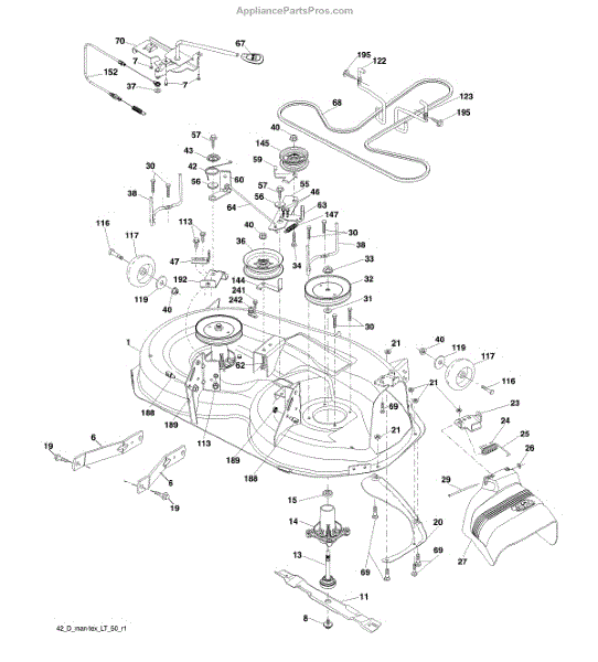 The mandrel pulley or spindle pulley is a metal part that spins the blades of a riding mower as it is turned with a belt. Though quite durable, on occasion, something happens to dent or warp the pulley housing, interfering with the turning of the blades and creating a dangerous situation. Once you have found a stationary place for the mower and made certain it cannot be started, drop the mower housing by removing the locking pins and arms. Next, you’ll want to disconnect the spring from the clutch rod. This will allow you to roll the mowing belt off the engine pulley. Remove the deck from beneath the tractor. Using a lubricant, remove the flange nut from the pulley assembly. Next, take the top flange nut off the pulley with a socket wrench. Penetrating oil may be required. Take the pulley from the spindle. Reassembling the unit is a matter of walking back through the disassembly process. This spindle pulley is an OEM replacement manufactured by Husqvarna. In addition, it is compatible with many Craftsmen mowers as well. This OEM part is individually packaged and sold.