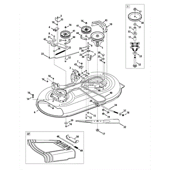 The Lawn Mower Spindle Assembly is an OEM part for MTD lawn mowers Located in the mower's lower deck, the spindle assembly connects the blade to the drive belt. This enables the mower to cut grass effectively. This assembly is comprised of an adapter and a spindle. It gets activated as a pulley spins the drive belt. While designed to withstand minor impacts, larger or harder objects may cause damage. Damage can lead to blade misalignment or detachment.