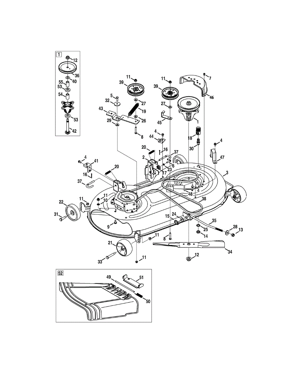 Deck pulley transfers power to mower blades. Common when blades won't engage or spin unevenly. Straightforward repair for most DIYers with basic tools.
