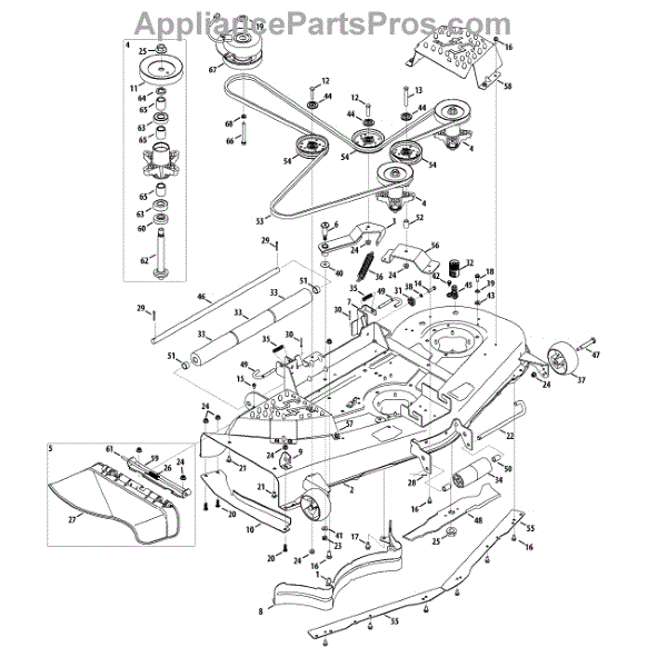 This cap pulley is a genuine MTD part that is manufactured for compatibility with lawn tractors. On a lawn tractor, the cap pulley, or pulley cap, along with the idler arm and idler arm spring, create tension on the deck drive belt which allows it to operate.It is normal for this cap to become worn over time. It is a relatively easy repair, but the deck of the mower must be removed. One of the biggest signs of a problem with the pulley is a squealing sound, although there may be no signs that it is wearing out until it breaks completely.This cap pulley is a genuine OEM part sourced directly from the manufacturer. It is sold individually. It is manufactured for compatibility with lawn tractors made by Bolens, Craftsman, Columbia, Huskee, Husky, Mastercut, MTD Gold, Murray, Yard Machines, and Yard-Man.