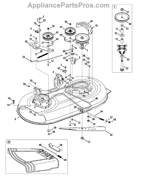 The Lawn Mower Spindle Assembly is an OEM part for MTD lawn mowers Located in the mower's lower deck, the spindle assembly connects the blade to the drive belt. This enables the mower to cut grass effectively. This assembly is comprised of an adapter and a spindle. It gets activated as a pulley spins the drive belt. While designed to withstand minor impacts, larger or harder objects may cause damage. Damage can lead to blade misalignment or detachment.