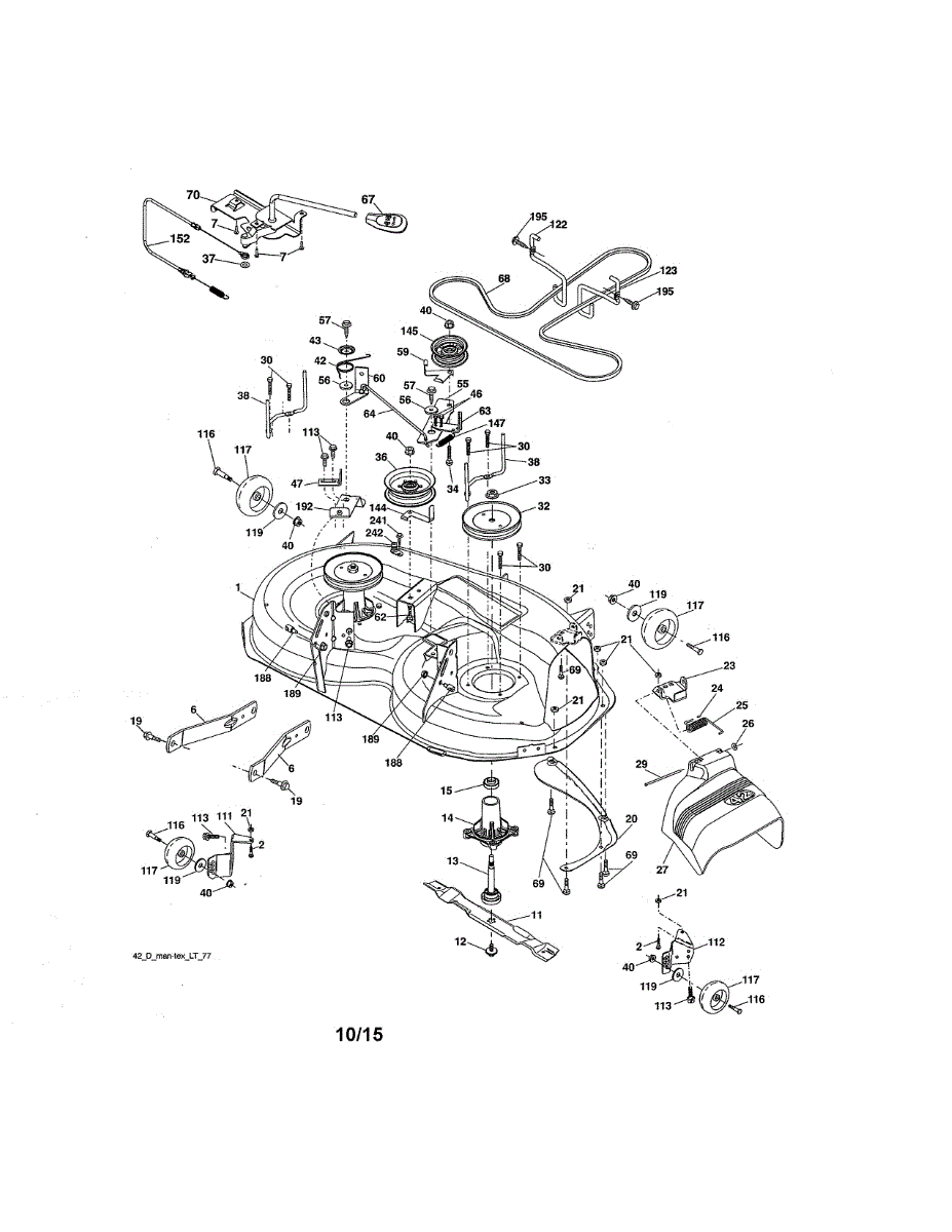 Replacement hex head screw for lawn tractors and riding mowers. Use to replace broken, stripped, or missing screws in various mounting locations.