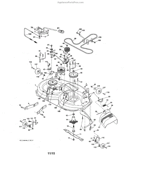 This no grease mandrel assembly is the part that houses the shaft where the mower blade attaches. It is mounted to the deck of the mower by three bolts, which are sold separately. The mounting holes on the mandrel housing are not threaded, but the bolts used to secure the mandrel to the deck are self-tapping. If the lawnmower is no longer providing an even cut, there may be a problem with the mandrel assembly. A broken or damaged mandrel assembly can severely reduce the mower's cutting performance. Replace it as soon as possible. The mandrel shaft goes through the deck, and the pulleys are attached to them, then the belt that drives the mandrels is placed in the pulleys. A spacer must be installed under the pulley. Failing to use a spacer or installing it on top of the pulley will result in damage to the shaft and pulley. This mandrel assembly is compatible with Ariens, Craftsman, Husqvarna, Poulan, and Weed Eater lawn mower models. It is an OEM part sourced directly from the manufacturer and is sold individually. The mandrel assembly includes a housing, shaft assembly, bearing, and nut only; the pulley/washer and blade bolt/washers are not included.