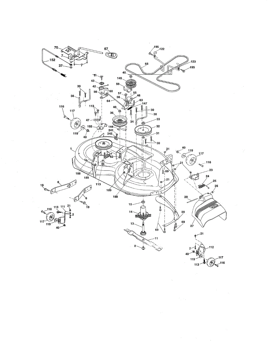 Mechanical clutch cable for riding mowers with lever-operated transmissions. Replace if cable is frayed, stretched, broken, or no longer engages smoothly.