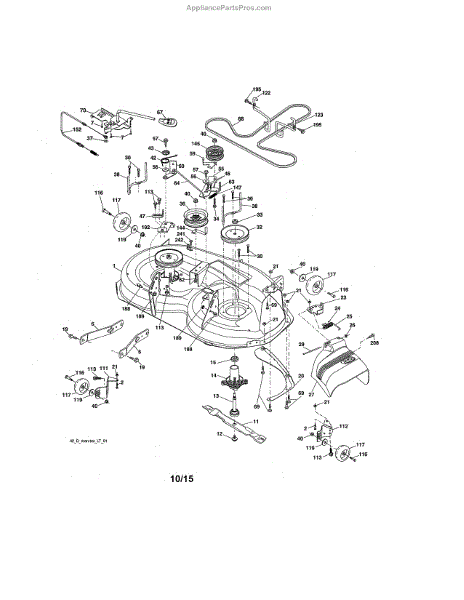 This no grease mandrel assembly is the part that houses the shaft where the mower blade attaches. It is mounted to the deck of the mower by three bolts, which are sold separately. The mounting holes on the mandrel housing are not threaded, but the bolts used to secure the mandrel to the deck are self-tapping. If the lawnmower is no longer providing an even cut, there may be a problem with the mandrel assembly. A broken or damaged mandrel assembly can severely reduce the mower's cutting performance. Replace it as soon as possible. The mandrel shaft goes through the deck, and the pulleys are attached to them, then the belt that drives the mandrels is placed in the pulleys. A spacer must be installed under the pulley. Failing to use a spacer or installing it on top of the pulley will result in damage to the shaft and pulley. This mandrel assembly is compatible with Ariens, Craftsman, Husqvarna, Poulan, and Weed Eater lawn mower models. It is an OEM part sourced directly from the manufacturer and is sold individually. The mandrel assembly includes a housing, shaft assembly, bearing, and nut only; the pulley/washer and blade bolt/washers are not included.