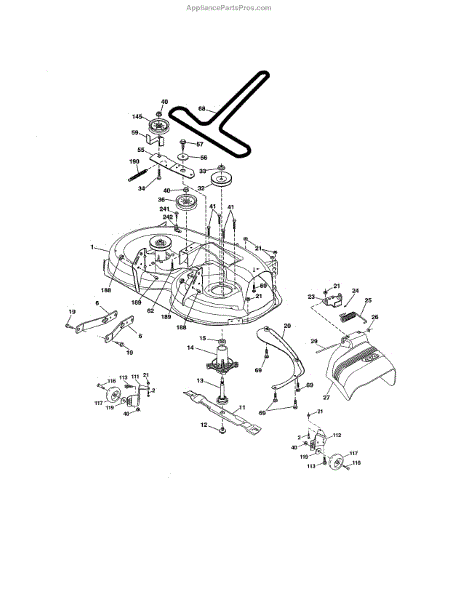 This no grease mandrel assembly is the part that houses the shaft where the mower blade attaches. It is mounted to the deck of the mower by three bolts, which are sold separately. The mounting holes on the mandrel housing are not threaded, but the bolts used to secure the mandrel to the deck are self-tapping. If the lawnmower is no longer providing an even cut, there may be a problem with the mandrel assembly. A broken or damaged mandrel assembly can severely reduce the mower's cutting performance. Replace it as soon as possible. The mandrel shaft goes through the deck, and the pulleys are attached to them, then the belt that drives the mandrels is placed in the pulleys. A spacer must be installed under the pulley. Failing to use a spacer or installing it on top of the pulley will result in damage to the shaft and pulley. This mandrel assembly is compatible with Ariens, Craftsman, Husqvarna, Poulan, and Weed Eater lawn mower models. It is an OEM part sourced directly from the manufacturer and is sold individually. The mandrel assembly includes a housing, shaft assembly, bearing, and nut only; the pulley/washer and blade bolt/washers are not included.