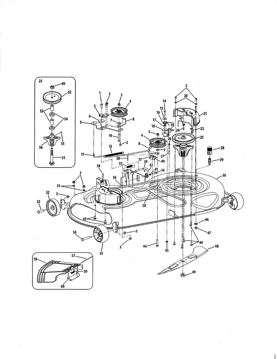 Deck pulley transfers power to mower blades. Common when blades won't engage or spin unevenly. Straightforward repair for most DIYers with basic tools.