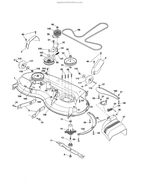 Center front baffle installs beneath the mower deck to direct airflow and grass clippings. Replace if your original baffle is cracked, broken, or missing.