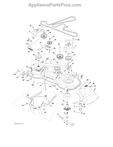 This no grease mandrel assembly is the part that houses the shaft where the mower blade attaches. It is mounted to the deck of the mower by three bolts, which are sold separately. The mounting holes on the mandrel housing are not threaded, but the bolts used to secure the mandrel to the deck are self-tapping. If the lawnmower is no longer providing an even cut, there may be a problem with the mandrel assembly. A broken or damaged mandrel assembly can severely reduce the mower's cutting performance. Replace it as soon as possible. The mandrel shaft goes through the deck, and the pulleys are attached to them, then the belt that drives the mandrels is placed in the pulleys. A spacer must be installed under the pulley. Failing to use a spacer or installing it on top of the pulley will result in damage to the shaft and pulley. This mandrel assembly is compatible with Ariens, Craftsman, Husqvarna, Poulan, and Weed Eater lawn mower models. It is an OEM part sourced directly from the manufacturer and is sold individually. The mandrel assembly includes a housing, shaft assembly, bearing, and nut only; the pulley/washer and blade bolt/washers are not included.