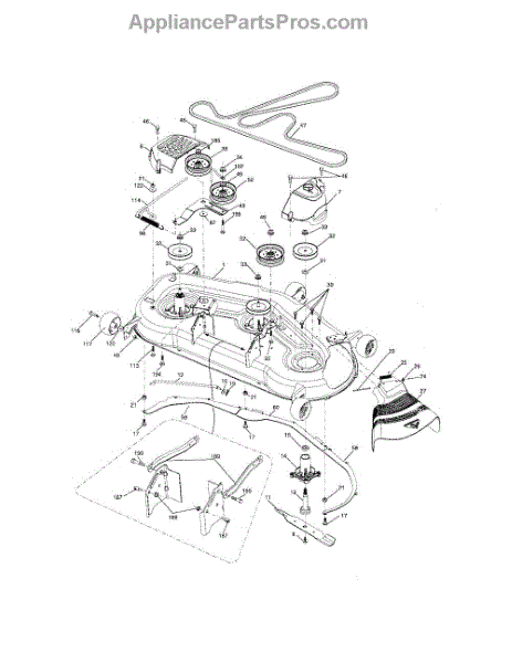 This no grease mandrel assembly is the part that houses the shaft where the mower blade attaches. It is mounted to the deck of the mower by three bolts, which are sold separately. The mounting holes on the mandrel housing are not threaded, but the bolts used to secure the mandrel to the deck are self-tapping. If the lawnmower is no longer providing an even cut, there may be a problem with the mandrel assembly. A broken or damaged mandrel assembly can severely reduce the mower's cutting performance. Replace it as soon as possible. The mandrel shaft goes through the deck, and the pulleys are attached to them, then the belt that drives the mandrels is placed in the pulleys. A spacer must be installed under the pulley. Failing to use a spacer or installing it on top of the pulley will result in damage to the shaft and pulley. This mandrel assembly is compatible with Ariens, Craftsman, Husqvarna, Poulan, and Weed Eater lawn mower models. It is an OEM part sourced directly from the manufacturer and is sold individually. The mandrel assembly includes a housing, shaft assembly, bearing, and nut only; the pulley/washer and blade bolt/washers are not included.