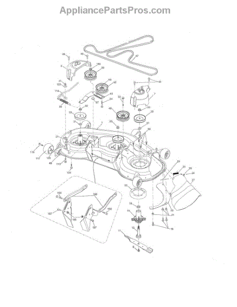 This no grease mandrel assembly is the part that houses the shaft where the mower blade attaches. It is mounted to the deck of the mower by three bolts, which are sold separately. The mounting holes on the mandrel housing are not threaded, but the bolts used to secure the mandrel to the deck are self-tapping. If the lawnmower is no longer providing an even cut, there may be a problem with the mandrel assembly. A broken or damaged mandrel assembly can severely reduce the mower's cutting performance. Replace it as soon as possible. The mandrel shaft goes through the deck, and the pulleys are attached to them, then the belt that drives the mandrels is placed in the pulleys. A spacer must be installed under the pulley. Failing to use a spacer or installing it on top of the pulley will result in damage to the shaft and pulley. This mandrel assembly is compatible with Ariens, Craftsman, Husqvarna, Poulan, and Weed Eater lawn mower models. It is an OEM part sourced directly from the manufacturer and is sold individually. The mandrel assembly includes a housing, shaft assembly, bearing, and nut only; the pulley/washer and blade bolt/washers are not included.