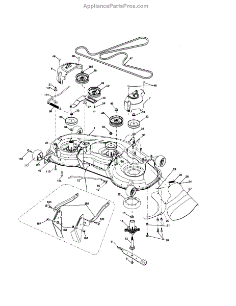 This no grease mandrel assembly is the part that houses the shaft where the mower blade attaches. It is mounted to the deck of the mower by three bolts, which are sold separately. The mounting holes on the mandrel housing are not threaded, but the bolts used to secure the mandrel to the deck are self-tapping. If the lawnmower is no longer providing an even cut, there may be a problem with the mandrel assembly. A broken or damaged mandrel assembly can severely reduce the mower's cutting performance. Replace it as soon as possible. The mandrel shaft goes through the deck, and the pulleys are attached to them, then the belt that drives the mandrels is placed in the pulleys. A spacer must be installed under the pulley. Failing to use a spacer or installing it on top of the pulley will result in damage to the shaft and pulley. This mandrel assembly is compatible with Ariens, Craftsman, Husqvarna, Poulan, and Weed Eater lawn mower models. It is an OEM part sourced directly from the manufacturer and is sold individually. The mandrel assembly includes a housing, shaft assembly, bearing, and nut only; the pulley/washer and blade bolt/washers are not included.