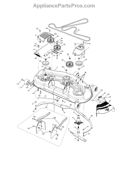 This no grease mandrel assembly is the part that houses the shaft where the mower blade attaches. It is mounted to the deck of the mower by three bolts, which are sold separately. The mounting holes on the mandrel housing are not threaded, but the bolts used to secure the mandrel to the deck are self-tapping. If the lawnmower is no longer providing an even cut, there may be a problem with the mandrel assembly. A broken or damaged mandrel assembly can severely reduce the mower's cutting performance. Replace it as soon as possible. The mandrel shaft goes through the deck, and the pulleys are attached to them, then the belt that drives the mandrels is placed in the pulleys. A spacer must be installed under the pulley. Failing to use a spacer or installing it on top of the pulley will result in damage to the shaft and pulley. This mandrel assembly is compatible with Ariens, Craftsman, Husqvarna, Poulan, and Weed Eater lawn mower models. It is an OEM part sourced directly from the manufacturer and is sold individually. The mandrel assembly includes a housing, shaft assembly, bearing, and nut only; the pulley/washer and blade bolt/washers are not included.