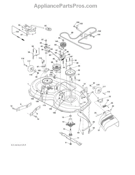 This no grease mandrel assembly is the part that houses the shaft where the mower blade attaches. It is mounted to the deck of the mower by three bolts, which are sold separately. The mounting holes on the mandrel housing are not threaded, but the bolts used to secure the mandrel to the deck are self-tapping. If the lawnmower is no longer providing an even cut, there may be a problem with the mandrel assembly. A broken or damaged mandrel assembly can severely reduce the mower's cutting performance. Replace it as soon as possible. The mandrel shaft goes through the deck, and the pulleys are attached to them, then the belt that drives the mandrels is placed in the pulleys. A spacer must be installed under the pulley. Failing to use a spacer or installing it on top of the pulley will result in damage to the shaft and pulley. This mandrel assembly is compatible with Ariens, Craftsman, Husqvarna, Poulan, and Weed Eater lawn mower models. It is an OEM part sourced directly from the manufacturer and is sold individually. The mandrel assembly includes a housing, shaft assembly, bearing, and nut only; the pulley/washer and blade bolt/washers are not included.