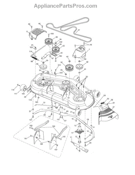 This no grease mandrel assembly is the part that houses the shaft where the mower blade attaches. It is mounted to the deck of the mower by three bolts, which are sold separately. The mounting holes on the mandrel housing are not threaded, but the bolts used to secure the mandrel to the deck are self-tapping. If the lawnmower is no longer providing an even cut, there may be a problem with the mandrel assembly. A broken or damaged mandrel assembly can severely reduce the mower's cutting performance. Replace it as soon as possible. The mandrel shaft goes through the deck, and the pulleys are attached to them, then the belt that drives the mandrels is placed in the pulleys. A spacer must be installed under the pulley. Failing to use a spacer or installing it on top of the pulley will result in damage to the shaft and pulley. This mandrel assembly is compatible with Ariens, Craftsman, Husqvarna, Poulan, and Weed Eater lawn mower models. It is an OEM part sourced directly from the manufacturer and is sold individually. The mandrel assembly includes a housing, shaft assembly, bearing, and nut only; the pulley/washer and blade bolt/washers are not included.
