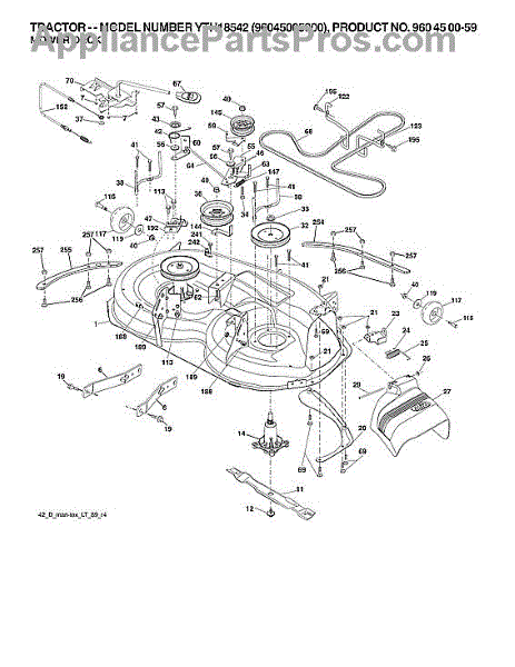 This no grease mandrel assembly is the part that houses the shaft where the mower blade attaches. It is mounted to the deck of the mower by three bolts, which are sold separately. The mounting holes on the mandrel housing are not threaded, but the bolts used to secure the mandrel to the deck are self-tapping. If the lawnmower is no longer providing an even cut, there may be a problem with the mandrel assembly. A broken or damaged mandrel assembly can severely reduce the mower's cutting performance. Replace it as soon as possible. The mandrel shaft goes through the deck, and the pulleys are attached to them, then the belt that drives the mandrels is placed in the pulleys. A spacer must be installed under the pulley. Failing to use a spacer or installing it on top of the pulley will result in damage to the shaft and pulley. This mandrel assembly is compatible with Ariens, Craftsman, Husqvarna, Poulan, and Weed Eater lawn mower models. It is an OEM part sourced directly from the manufacturer and is sold individually. The mandrel assembly includes a housing, shaft assembly, bearing, and nut only; the pulley/washer and blade bolt/washers are not included.