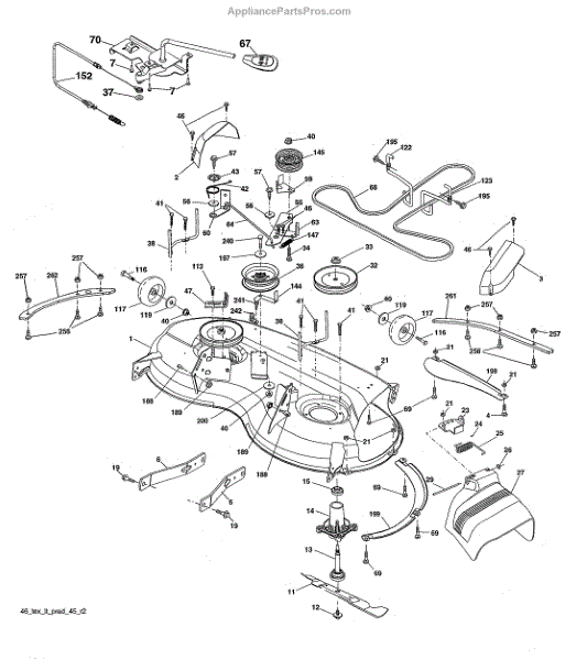 This is a replacement lawn tractor shield-deflector. The shield-deflector, or grass chute, is made from strong, high-quality plastic and attaches to the lawn tractor deck's side. Its purpose is to direct grass clippings and other debris away from the rider while mowing. Over time, the original shield-deflector can become worn and damaged, allowing debris to blow up onto the lawn tractor driver. Debris expelled from the lawn tractor can cause property damage, injury, or even death. Ensure the area is always clear of bystanders while mowing and consult the operator's manual to ensure proper installation of all replacement parts.This shield-deflector is designed to be a replacement for original worn or damaged shield-deflectors on AYP, Jonsered, Redmax, Craftsman, Poulan, Husqvarna, Poulan Pro, Weed Eater, and McCulloch 46-inch lawn tractor decks. This replacement shield-deflector is an OEM part that is sourced directly from the manufacturer. The shield-deflector is sold individually and does not come with hardware included. Tools needed for replacement may consist of; 1/2 inch socket, 7/16 inch socket, vise-grip pliers, a large flat-head screwdriver, and a hammer.