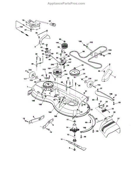 This is a replacement lawn tractor shield-deflector. The shield-deflector, or grass chute, is made from strong, high-quality plastic and attaches to the lawn tractor deck's side. Its purpose is to direct grass clippings and other debris away from the rider while mowing. Over time, the original shield-deflector can become worn and damaged, allowing debris to blow up onto the lawn tractor driver. Debris expelled from the lawn tractor can cause property damage, injury, or even death. Ensure the area is always clear of bystanders while mowing and consult the operator's manual to ensure proper installation of all replacement parts.This shield-deflector is designed to be a replacement for original worn or damaged shield-deflectors on AYP, Jonsered, Redmax, Craftsman, Poulan, Husqvarna, Poulan Pro, Weed Eater, and McCulloch 46-inch lawn tractor decks. This replacement shield-deflector is an OEM part that is sourced directly from the manufacturer. The shield-deflector is sold individually and does not come with hardware included. Tools needed for replacement may consist of; 1/2 inch socket, 7/16 inch socket, vise-grip pliers, a large flat-head screwdriver, and a hammer.