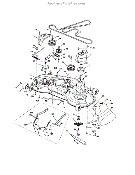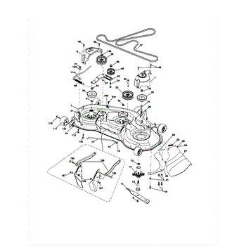 This no grease mandrel assembly is the part that houses the shaft where the mower blade attaches. It is mounted to the deck of the mower by three bolts, which are sold separately. The mounting holes on the mandrel housing are not threaded, but the bolts used to secure the mandrel to the deck are self-tapping. If the lawnmower is no longer providing an even cut, there may be a problem with the mandrel assembly. A broken or damaged mandrel assembly can severely reduce the mower's cutting performance. Replace it as soon as possible. The mandrel shaft goes through the deck, and the pulleys are attached to them, then the belt that drives the mandrels is placed in the pulleys. A spacer must be installed under the pulley. Failing to use a spacer or installing it on top of the pulley will result in damage to the shaft and pulley. This mandrel assembly is compatible with Ariens, Craftsman, Husqvarna, Poulan, and Weed Eater lawn mower models. It is an OEM part sourced directly from the manufacturer and is sold individually. The mandrel assembly includes a housing, shaft assembly, bearing, and nut only; the pulley/washer and blade bolt/washers are not included.