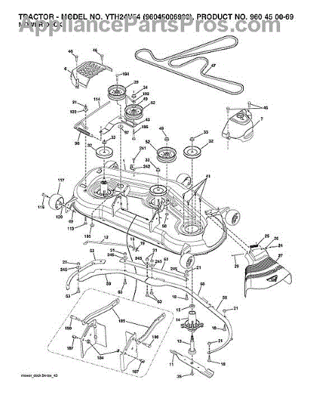 This no grease mandrel assembly is the part that houses the shaft where the mower blade attaches. It is mounted to the deck of the mower by three bolts, which are sold separately. The mounting holes on the mandrel housing are not threaded, but the bolts used to secure the mandrel to the deck are self-tapping. If the lawnmower is no longer providing an even cut, there may be a problem with the mandrel assembly. A broken or damaged mandrel assembly can severely reduce the mower's cutting performance. Replace it as soon as possible. The mandrel shaft goes through the deck, and the pulleys are attached to them, then the belt that drives the mandrels is placed in the pulleys. A spacer must be installed under the pulley. Failing to use a spacer or installing it on top of the pulley will result in damage to the shaft and pulley. This mandrel assembly is compatible with Ariens, Craftsman, Husqvarna, Poulan, and Weed Eater lawn mower models. It is an OEM part sourced directly from the manufacturer and is sold individually. The mandrel assembly includes a housing, shaft assembly, bearing, and nut only; the pulley/washer and blade bolt/washers are not included.