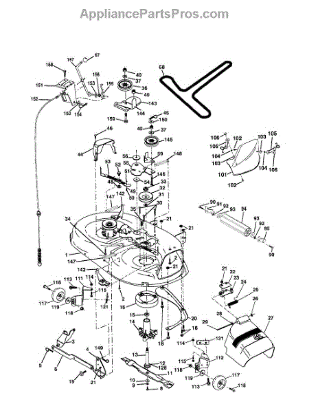 This is a belt guard for use with certain models of riding mower and lawn tractor. The belt guard is situated between the washer and the arm idler. The purpose of the guard is to help guide the belt so that it works properly. They could also help to protect the belts from damage and work as a safety feature.The belt guard is made from durable metal and it is made to last. However, owners might find that they eventually need to replace the piece if it breaks or has other damage. If the belt guard has been bent or if it is corroding, it will not do its job properly. Replacing the guard will require a socket set, wrench set, and a set of pliers.The belt guard can serve as a replacement for many models of riding mowers and tractors from Husqvarna, Weed Eater, Ryobi, Poulan, and Jonsered. The piece is sold individually, and it is an authentic OEM replacement part sourced from the manufacturer.