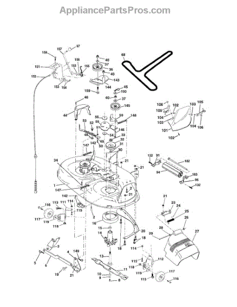 This is a belt guard for use with certain models of riding mower and lawn tractor. The belt guard is situated between the washer and the arm idler. The purpose of the guard is to help guide the belt so that it works properly. They could also help to protect the belts from damage and work as a safety feature.The belt guard is made from durable metal and it is made to last. However, owners might find that they eventually need to replace the piece if it breaks or has other damage. If the belt guard has been bent or if it is corroding, it will not do its job properly. Replacing the guard will require a socket set, wrench set, and a set of pliers.The belt guard can serve as a replacement for many models of riding mowers and tractors from Husqvarna, Weed Eater, Ryobi, Poulan, and Jonsered. The piece is sold individually, and it is an authentic OEM replacement part sourced from the manufacturer.
