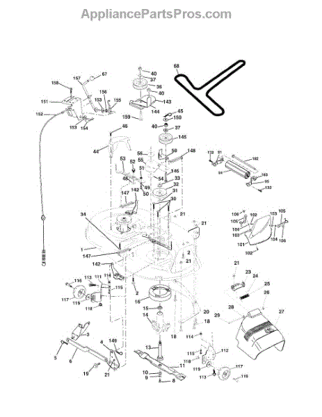 This is a belt guard for use with certain models of riding mower and lawn tractor. The belt guard is situated between the washer and the arm idler. The purpose of the guard is to help guide the belt so that it works properly. They could also help to protect the belts from damage and work as a safety feature.The belt guard is made from durable metal and it is made to last. However, owners might find that they eventually need to replace the piece if it breaks or has other damage. If the belt guard has been bent or if it is corroding, it will not do its job properly. Replacing the guard will require a socket set, wrench set, and a set of pliers.The belt guard can serve as a replacement for many models of riding mowers and tractors from Husqvarna, Weed Eater, Ryobi, Poulan, and Jonsered. The piece is sold individually, and it is an authentic OEM replacement part sourced from the manufacturer.