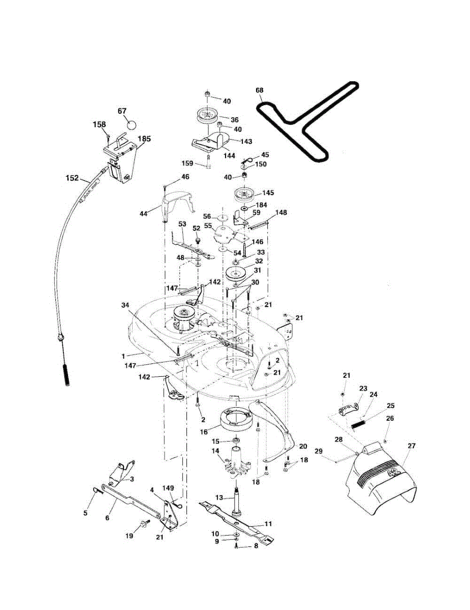 This clutch cable kit is an authentic OEM replacement part for a riding lawn mower or tractor. The clutch cable connects to the idler arm located in the lower deck of a mower and allows the operator to manually engage or disengage the blades. The clutch c