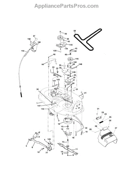 This is a belt guard for use with certain models of riding mower and lawn tractor. The belt guard is situated between the washer and the arm idler. The purpose of the guard is to help guide the belt so that it works properly. They could also help to protect the belts from damage and work as a safety feature.The belt guard is made from durable metal and it is made to last. However, owners might find that they eventually need to replace the piece if it breaks or has other damage. If the belt guard has been bent or if it is corroding, it will not do its job properly. Replacing the guard will require a socket set, wrench set, and a set of pliers.The belt guard can serve as a replacement for many models of riding mowers and tractors from Husqvarna, Weed Eater, Ryobi, Poulan, and Jonsered. The piece is sold individually, and it is an authentic OEM replacement part sourced from the manufacturer.
