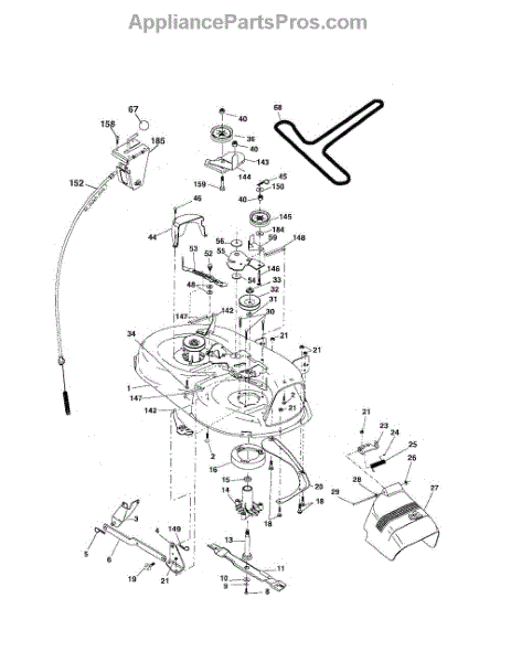 This is a belt guard for use with certain models of riding mower and lawn tractor. The belt guard is situated between the washer and the arm idler. The purpose of the guard is to help guide the belt so that it works properly. They could also help to protect the belts from damage and work as a safety feature.The belt guard is made from durable metal and it is made to last. However, owners might find that they eventually need to replace the piece if it breaks or has other damage. If the belt guard has been bent or if it is corroding, it will not do its job properly. Replacing the guard will require a socket set, wrench set, and a set of pliers.The belt guard can serve as a replacement for many models of riding mowers and tractors from Husqvarna, Weed Eater, Ryobi, Poulan, and Jonsered. The piece is sold individually, and it is an authentic OEM replacement part sourced from the manufacturer.