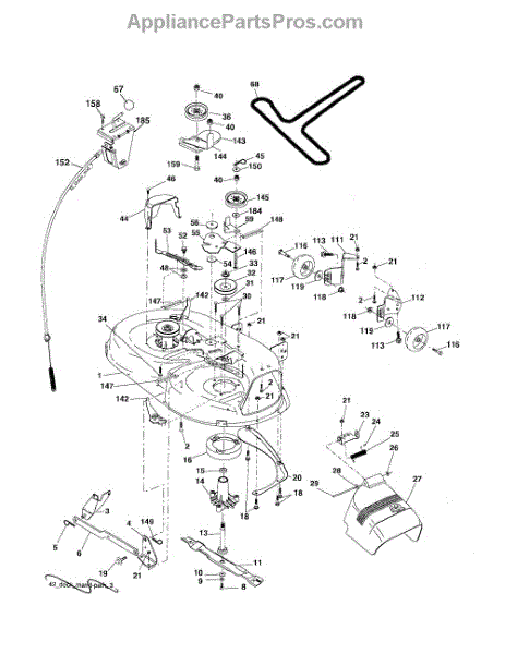 This is a belt guard for use with certain models of riding mower and lawn tractor. The belt guard is situated between the washer and the arm idler. The purpose of the guard is to help guide the belt so that it works properly. They could also help to protect the belts from damage and work as a safety feature.The belt guard is made from durable metal and it is made to last. However, owners might find that they eventually need to replace the piece if it breaks or has other damage. If the belt guard has been bent or if it is corroding, it will not do its job properly. Replacing the guard will require a socket set, wrench set, and a set of pliers.The belt guard can serve as a replacement for many models of riding mowers and tractors from Husqvarna, Weed Eater, Ryobi, Poulan, and Jonsered. The piece is sold individually, and it is an authentic OEM replacement part sourced from the manufacturer.