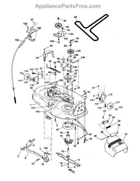 This is a belt guard for use with certain models of riding mower and lawn tractor. The belt guard is situated between the washer and the arm idler. The purpose of the guard is to help guide the belt so that it works properly. They could also help to protect the belts from damage and work as a safety feature.The belt guard is made from durable metal and it is made to last. However, owners might find that they eventually need to replace the piece if it breaks or has other damage. If the belt guard has been bent or if it is corroding, it will not do its job properly. Replacing the guard will require a socket set, wrench set, and a set of pliers.The belt guard can serve as a replacement for many models of riding mowers and tractors from Husqvarna, Weed Eater, Ryobi, Poulan, and Jonsered. The piece is sold individually, and it is an authentic OEM replacement part sourced from the manufacturer.