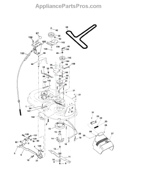 This is a belt guard for use with certain models of riding mower and lawn tractor. The belt guard is situated between the washer and the arm idler. The purpose of the guard is to help guide the belt so that it works properly. They could also help to protect the belts from damage and work as a safety feature.The belt guard is made from durable metal and it is made to last. However, owners might find that they eventually need to replace the piece if it breaks or has other damage. If the belt guard has been bent or if it is corroding, it will not do its job properly. Replacing the guard will require a socket set, wrench set, and a set of pliers.The belt guard can serve as a replacement for many models of riding mowers and tractors from Husqvarna, Weed Eater, Ryobi, Poulan, and Jonsered. The piece is sold individually, and it is an authentic OEM replacement part sourced from the manufacturer.