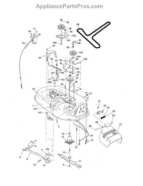 This is a belt guard for use with certain models of riding mower and lawn tractor. The belt guard is situated between the washer and the arm idler. The purpose of the guard is to help guide the belt so that it works properly. They could also help to protect the belts from damage and work as a safety feature.The belt guard is made from durable metal and it is made to last. However, owners might find that they eventually need to replace the piece if it breaks or has other damage. If the belt guard has been bent or if it is corroding, it will not do its job properly. Replacing the guard will require a socket set, wrench set, and a set of pliers.The belt guard can serve as a replacement for many models of riding mowers and tractors from Husqvarna, Weed Eater, Ryobi, Poulan, and Jonsered. The piece is sold individually, and it is an authentic OEM replacement part sourced from the manufacturer.