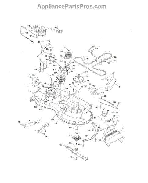 This is a belt guard for use with certain models of riding mower and lawn tractor. The belt guard is situated between the washer and the arm idler. The purpose of the guard is to help guide the belt so that it works properly. They could also help to protect the belts from damage and work as a safety feature.The belt guard is made from durable metal and it is made to last. However, owners might find that they eventually need to replace the piece if it breaks or has other damage. If the belt guard has been bent or if it is corroding, it will not do its job properly. Replacing the guard will require a socket set, wrench set, and a set of pliers.The belt guard can serve as a replacement for many models of riding mowers and tractors from Husqvarna, Weed Eater, Ryobi, Poulan, and Jonsered. The piece is sold individually, and it is an authentic OEM replacement part sourced from the manufacturer.