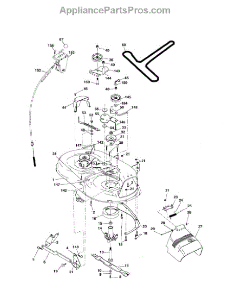 This is a belt guard for use with certain models of riding mower and lawn tractor. The belt guard is situated between the washer and the arm idler. The purpose of the guard is to help guide the belt so that it works properly. They could also help to protect the belts from damage and work as a safety feature.The belt guard is made from durable metal and it is made to last. However, owners might find that they eventually need to replace the piece if it breaks or has other damage. If the belt guard has been bent or if it is corroding, it will not do its job properly. Replacing the guard will require a socket set, wrench set, and a set of pliers.The belt guard can serve as a replacement for many models of riding mowers and tractors from Husqvarna, Weed Eater, Ryobi, Poulan, and Jonsered. The piece is sold individually, and it is an authentic OEM replacement part sourced from the manufacturer.