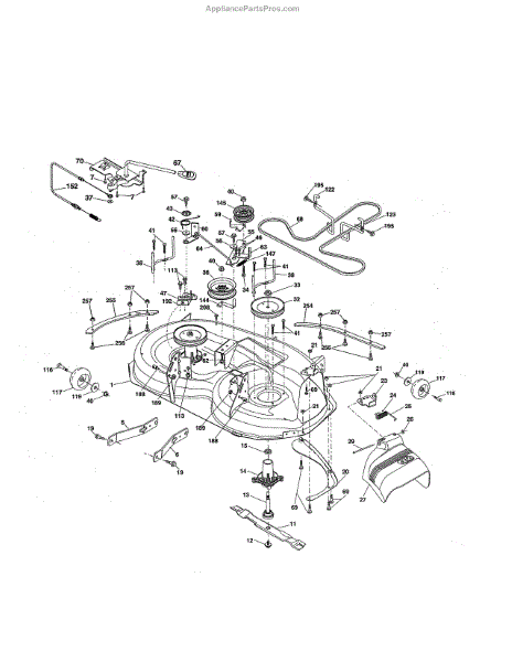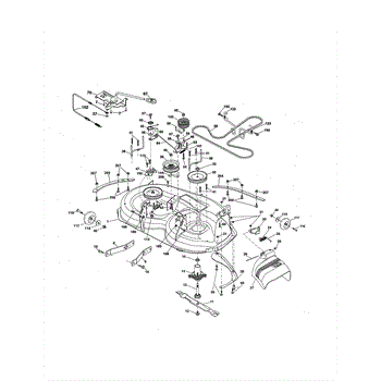 This no grease mandrel assembly is the part that houses the shaft where the mower blade attaches. It is mounted to the deck of the mower by three bolts, which are sold separately. The mounting holes on the mandrel housing are not threaded, but the bolts used to secure the mandrel to the deck are self-tapping. If the lawnmower is no longer providing an even cut, there may be a problem with the mandrel assembly. A broken or damaged mandrel assembly can severely reduce the mower's cutting performance. Replace it as soon as possible. The mandrel shaft goes through the deck, and the pulleys are attached to them, then the belt that drives the mandrels is placed in the pulleys. A spacer must be installed under the pulley. Failing to use a spacer or installing it on top of the pulley will result in damage to the shaft and pulley. This mandrel assembly is compatible with Ariens, Craftsman, Husqvarna, Poulan, and Weed Eater lawn mower models. It is an OEM part sourced directly from the manufacturer and is sold individually. The mandrel assembly includes a housing, shaft assembly, bearing, and nut only; the pulley/washer and blade bolt/washers are not included.