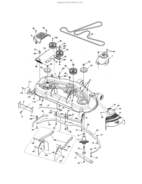 This no grease mandrel assembly is the part that houses the shaft where the mower blade attaches. It is mounted to the deck of the mower by three bolts, which are sold separately. The mounting holes on the mandrel housing are not threaded, but the bolts used to secure the mandrel to the deck are self-tapping. If the lawnmower is no longer providing an even cut, there may be a problem with the mandrel assembly. A broken or damaged mandrel assembly can severely reduce the mower's cutting performance. Replace it as soon as possible. The mandrel shaft goes through the deck, and the pulleys are attached to them, then the belt that drives the mandrels is placed in the pulleys. A spacer must be installed under the pulley. Failing to use a spacer or installing it on top of the pulley will result in damage to the shaft and pulley. This mandrel assembly is compatible with Ariens, Craftsman, Husqvarna, Poulan, and Weed Eater lawn mower models. It is an OEM part sourced directly from the manufacturer and is sold individually. The mandrel assembly includes a housing, shaft assembly, bearing, and nut only; the pulley/washer and blade bolt/washers are not included.