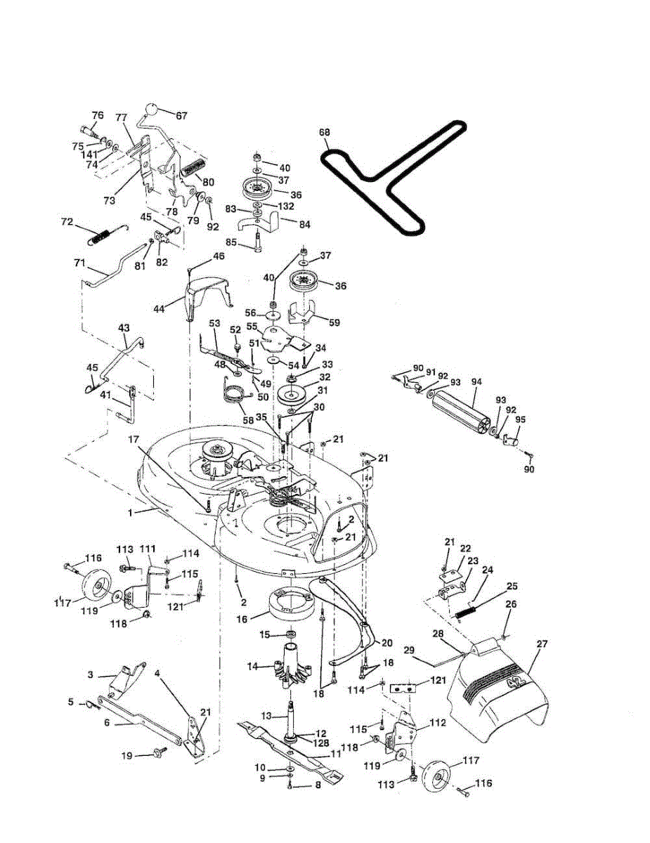 Deck idler pulley guides the mower belt on riding lawn tractors. Replace if belt slips, falls off, or pulley wobbles. Confirm fit with your model number.