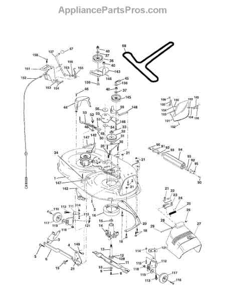 This is a belt guard for use with certain models of riding mower and lawn tractor. The belt guard is situated between the washer and the arm idler. The purpose of the guard is to help guide the belt so that it works properly. They could also help to protect the belts from damage and work as a safety feature.The belt guard is made from durable metal and it is made to last. However, owners might find that they eventually need to replace the piece if it breaks or has other damage. If the belt guard has been bent or if it is corroding, it will not do its job properly. Replacing the guard will require a socket set, wrench set, and a set of pliers.The belt guard can serve as a replacement for many models of riding mowers and tractors from Husqvarna, Weed Eater, Ryobi, Poulan, and Jonsered. The piece is sold individually, and it is an authentic OEM replacement part sourced from the manufacturer.