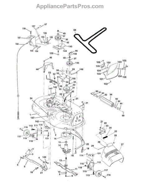 This is a belt guard for use with certain models of riding mower and lawn tractor. The belt guard is situated between the washer and the arm idler. The purpose of the guard is to help guide the belt so that it works properly. They could also help to protect the belts from damage and work as a safety feature.The belt guard is made from durable metal and it is made to last. However, owners might find that they eventually need to replace the piece if it breaks or has other damage. If the belt guard has been bent or if it is corroding, it will not do its job properly. Replacing the guard will require a socket set, wrench set, and a set of pliers.The belt guard can serve as a replacement for many models of riding mowers and tractors from Husqvarna, Weed Eater, Ryobi, Poulan, and Jonsered. The piece is sold individually, and it is an authentic OEM replacement part sourced from the manufacturer.