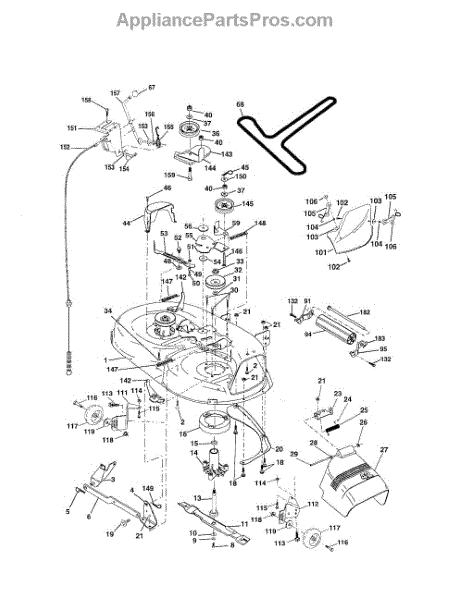 This is a belt guard for use with certain models of riding mower and lawn tractor. The belt guard is situated between the washer and the arm idler. The purpose of the guard is to help guide the belt so that it works properly. They could also help to protect the belts from damage and work as a safety feature.The belt guard is made from durable metal and it is made to last. However, owners might find that they eventually need to replace the piece if it breaks or has other damage. If the belt guard has been bent or if it is corroding, it will not do its job properly. Replacing the guard will require a socket set, wrench set, and a set of pliers.The belt guard can serve as a replacement for many models of riding mowers and tractors from Husqvarna, Weed Eater, Ryobi, Poulan, and Jonsered. The piece is sold individually, and it is an authentic OEM replacement part sourced from the manufacturer.