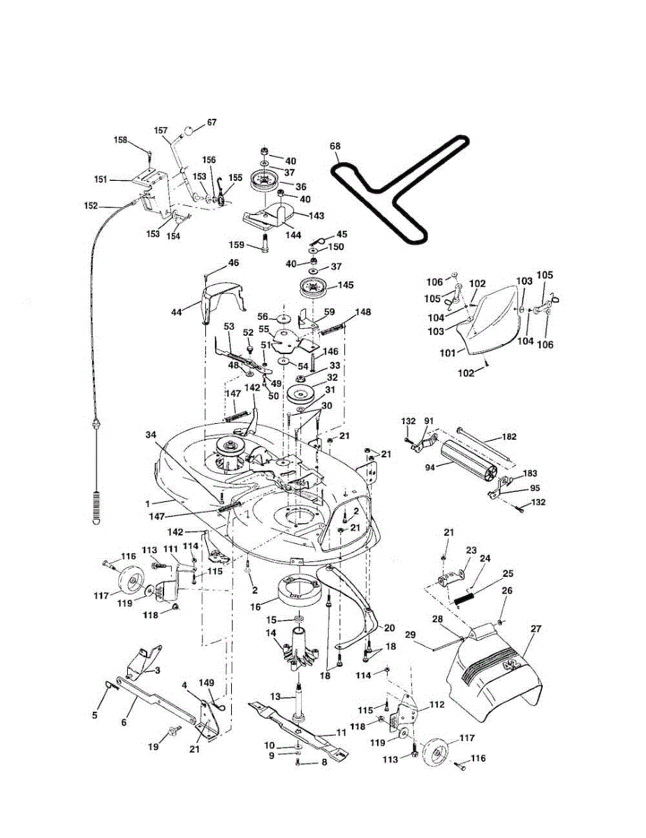Deck idler pulley guides the mower belt on riding lawn tractors. Replace if belt slips, falls off, or pulley wobbles. Confirm fit with your model number.