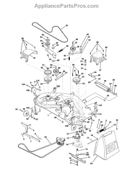 This 50-inch blade is made for use with riding lawn mowers by Craftsman and Husqvarna. The blade is the component that is responsible for cutting grass or other foliage when the lawnmower is in use. The blade can become worn over time and will leave grass with frayed edges. If the blade is worn out, it will need to be replaced to create a healthier-looking lawn. Replacing the blade will create a clean cutting edge after regular use of a lawnmower.If the mower blade needs to be replaced, a pair of pliers, a socket set, and a wrench set will be required. Place the lawnmower on a stable surface and pull up the blade deck for better access to the 50-inch blade. Take out the blades and the sheared pins before replacing them with new components. Reassemble the deck and test the lawnmower before use.This is an authentic OEM replacement component that is directly sourced from the manufacturer. It is sold as a single part. The 50-inch blade is made to be used in several lawn mowers and lawn tractors manufactured by Husqvarna and Craftsman.