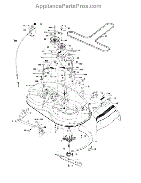 Deck idler pulley guides the mower belt on riding lawn tractors. Replace if belt slips, falls off, or pulley wobbles. Confirm fit with your model number.
