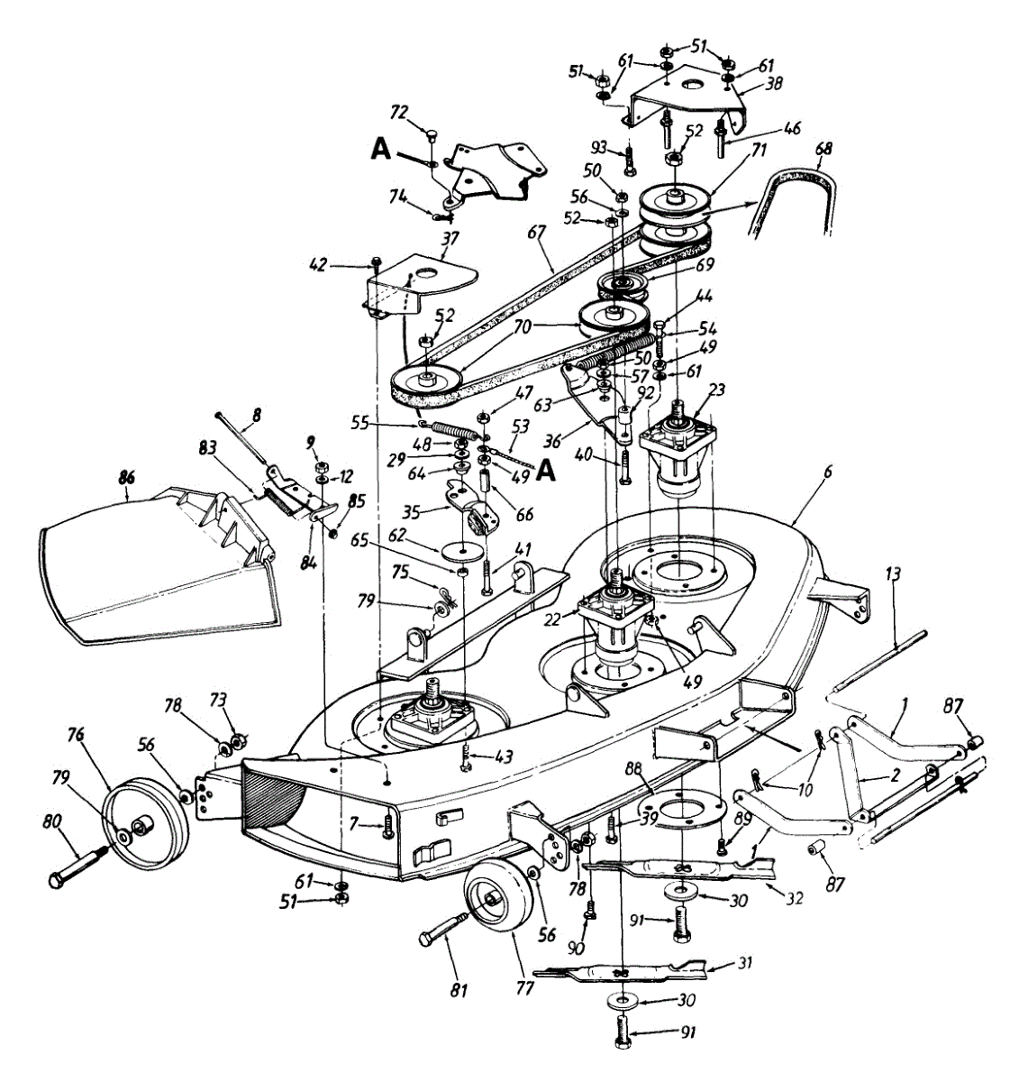 Fixes wobbling or stalled mower blades. This mandrel assembly connects the deck to the spindle for proper blade rotation. Moderate DIY repair.