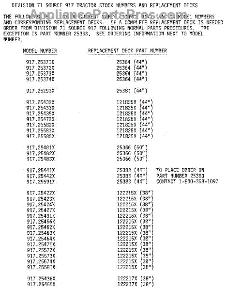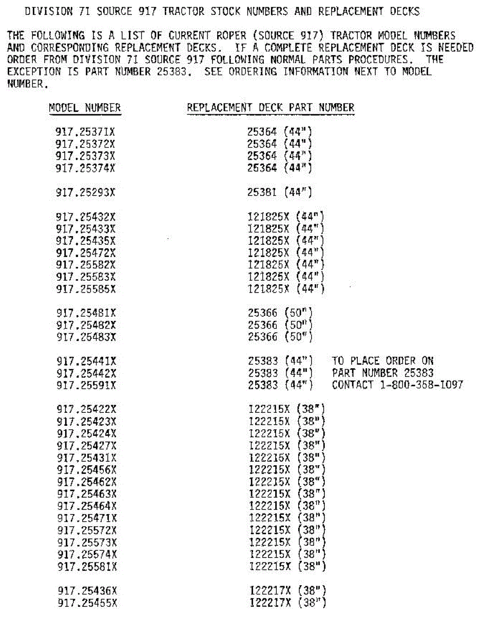 Parts for Craftsman 25386: Mower Deck Replacement Chart Parts