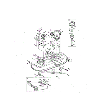 The deck assembly, also called a deck housing, is intended for use with lawn tractors. The purpose of the component is to provide housing for the blades on the lawn tractor. This helps to keep the blades and part of the underside of the tractor safe from damage that could occur when it is in use. It also ensures that the blades stay in place.This part could be damaged when running over rocks or branches. It could be cracked, blunted, or broken. If the piece does need to be replaced, allow the machine to cool and disconnect the spark plug wires before beginning any repairs.This large piece is sold individually and can work with select tractors from MTD, Yard Machines, and Craftsman. It is a genuine OEM replacement part.